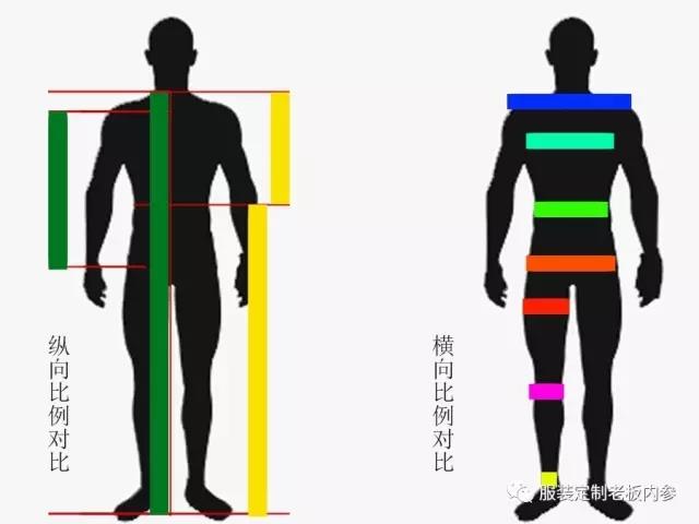 縱向:上肢與身長之間的對比,腰節(jié)以上和腰節(jié)以下進(jìn)行對比。